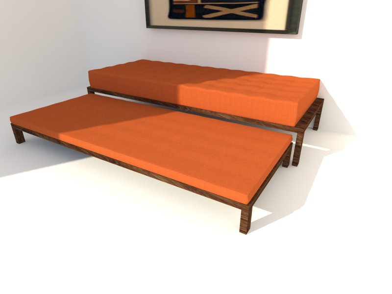 In comes this nesting bed.Footprint of a single bed/daybed/divan,possibility of double bed(s).